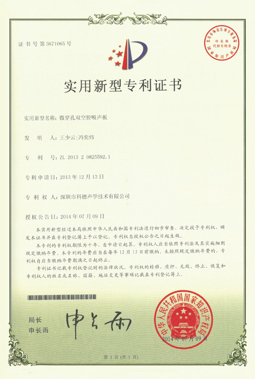 实用新型:微穿孔双空腔吸声板