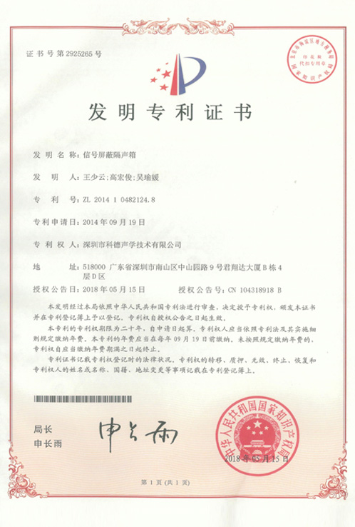 发明专利:信号屏蔽隔声箱