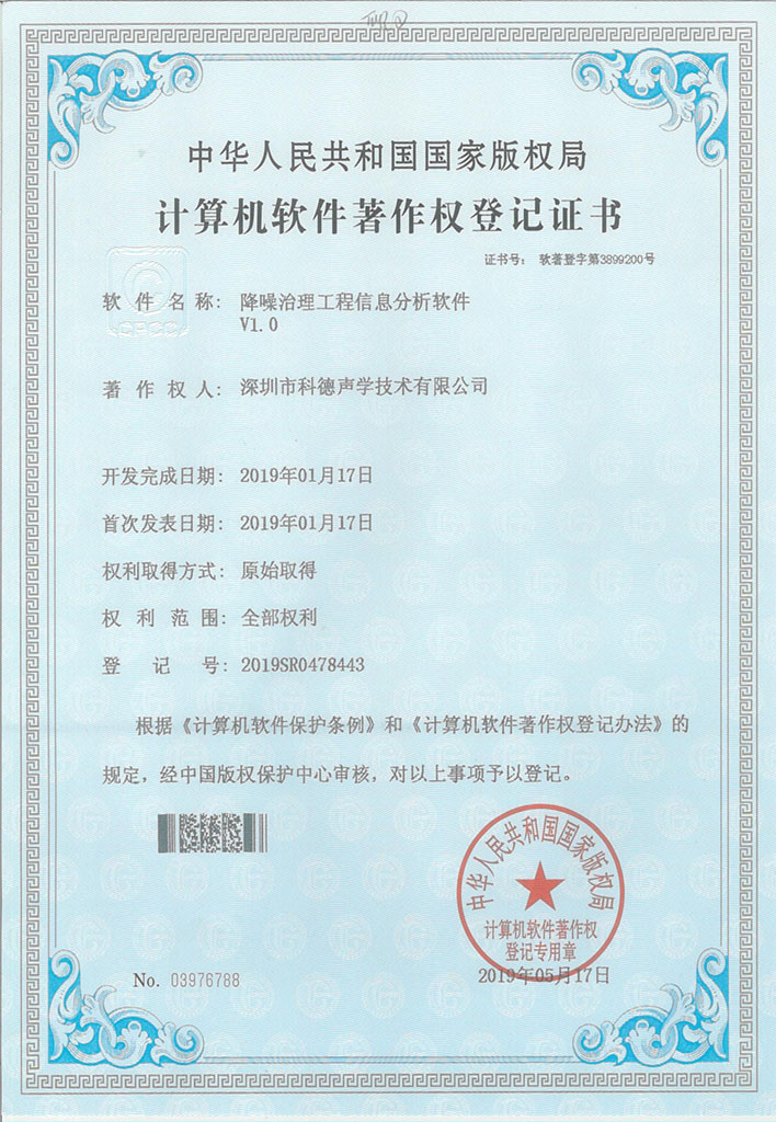 著作权:专业环保减震降噪处理系统V1.0