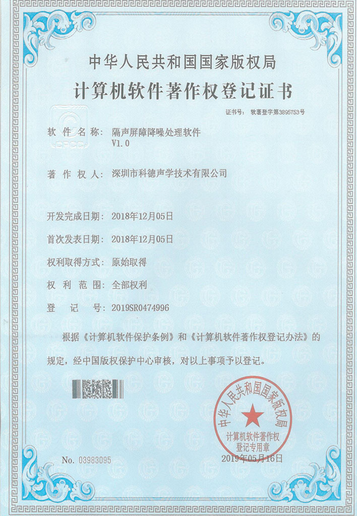 著作权:隔声屏障降噪处理软件V1.0